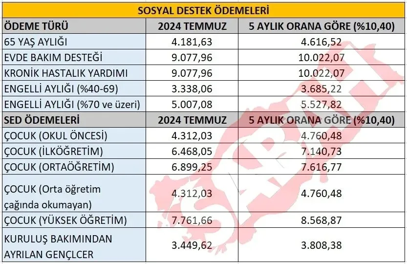 Memur zammı oranı kadar artan 65 yaş aylığı, engelli aylığı ve evde bakım parası gibi birçok sosyal ödeneğin de yeni tutarları belli oldu.