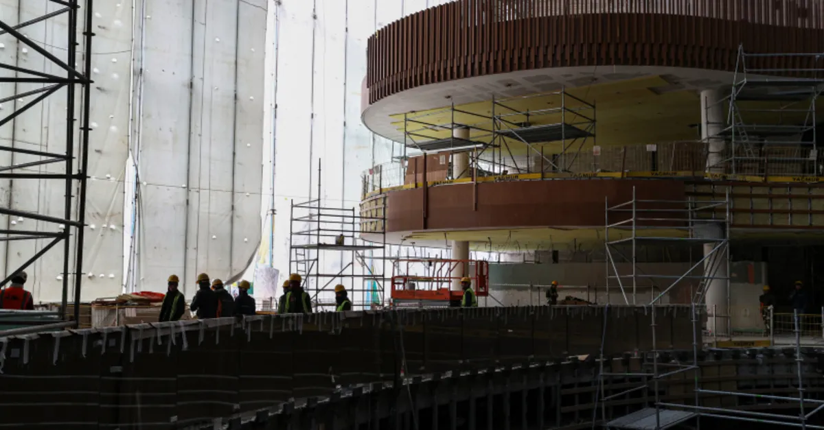 Bina dışı ve çatı işleri tamamlanan AKM'nin yüzde 86'sı bitti. Hareketli sahne ve opera salonunun yapımında da sona yaklaşılan merkezin ahşap kaplama çalışmaları ile sahne sisteminde kullanılacak motorların montajı ise sürüyor.