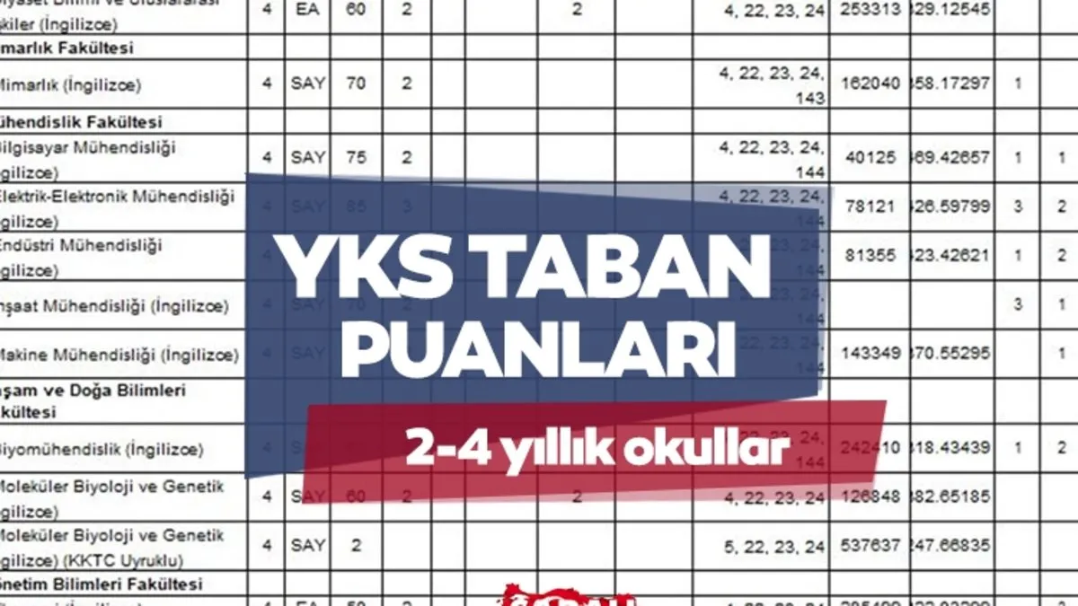 YKS sonuçları için geri sayım başladı. 21-22 Haziran tarihlerinde yapılan sınavın ardından adaylar, istedikleri üniversite ve bölümler için tercih listesi oluşturmaya başladı. Sonuçların açıklanacağı 22 Temmuz öncesi 2 yıllık ve 4 yıllık YKS üniversite taban puanları, başarı sıralamaları ve kontenjanlar yoğun şekilde araştırılıyor. Peki, YKS taban puanları açıklandı mı? İşte lisans ve ön lisans üniversite taban puanları ve başarı sıralamaları...