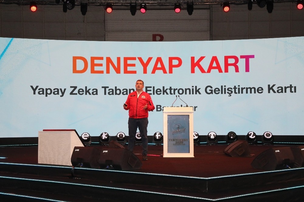 Gaziantep Büyükşehir Belediyesi’nin ev sahipliğinde gerçekleşen TEKNOFEST 2020 tüm hızıyla devam ediyor. Ortadoğu Fuar Merkezi’nde (OFM) gerçekleşen festivalde Türkiye Teknoloji Takımı (T3) Vakfı Yönetim Kurulu Başkanı Haluk Bayraktar tarafından yapay zeka tabanlı elektronik geliştirme kartı “Deneyap Kart” lansmanı yapıldı, 10 binini Dene Yap Atölyeleri’nde TEKNOFEST için çalışan öğrencilere hediye edileceğinin müjdesi verildi.