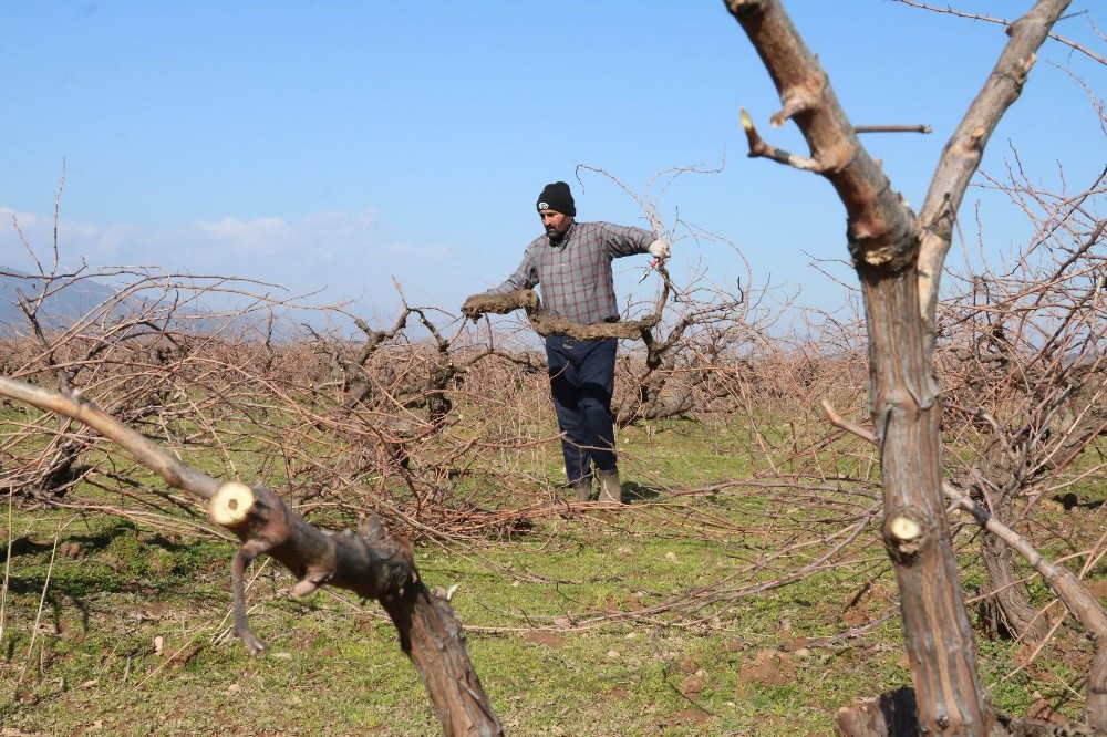 Gaziantep’in İslahiye ilçesinde yetişen meşhur Antep karası ve hatun parmağı üzüm ağaçlarının budamasına başlandı.