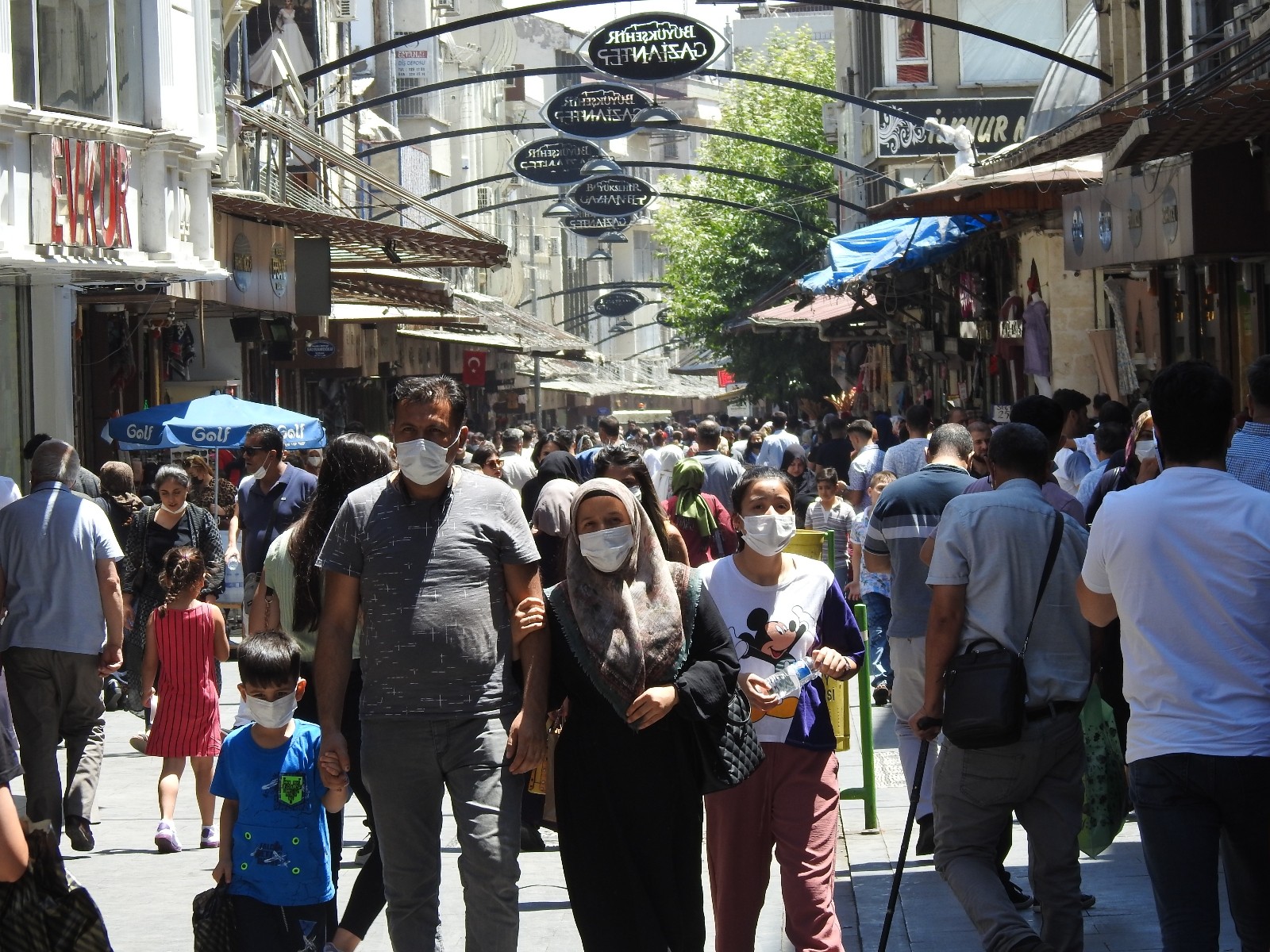 Gaziantep’te Kurban Bayramı’na sayılı günler kala alışveriş telaşı yaşayan vatandaşlar çarşılarda yoğunluk oluşturdu. Pandemi nedeniyle 2 yıldır bayramı evde geçirmek zorunda kalan vatandaşlar, Kurban Bayramı hazırlıkları için Gaziantep’in tarihi çarşı ve pazarlarına akın etti. Kentin en işlek caddesi olan Gaziler Caddesi’nde bayram alışveriş yapan vatandaşlar, sıcak nedeniyle zaman zaman zor anlar yaşadı. Vatandaşlar sıcağa rağmen alışverişlerine devam etti.