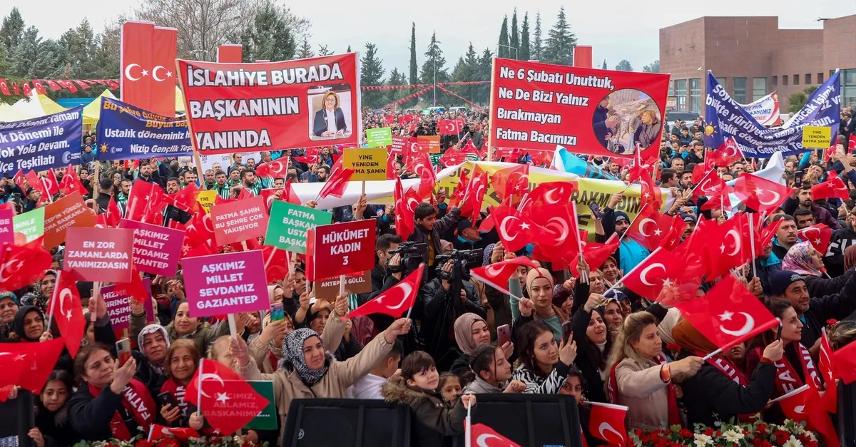 Ankara'da gerçekleştirilen 'AK Parti Aday Tanıtım Toplantısı'nda, Cumhurbaşkanı Recep Tayyip Erdoğan tarafından Gaziantep Büyükşehir Belediye Başkanlığı'na 3'üncü kez aday gösterilen mevcut belediye başkanı Fatma Şahin, kente dönüşünde havalimanında partililer tarafından meşaleler ve tezahüratlarla karşılandı.