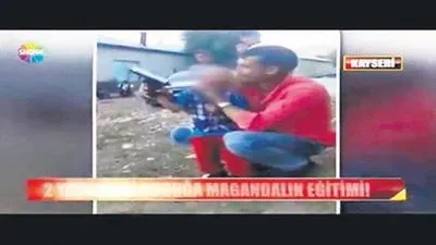 Haftanın en dehşet verici haber görüntülerinden biriydi. Bir baba müsveddesi, 3 yaşındaki oğluna gerçek tabanca ile ateş ettirmeye çalışıyordu. Çocuk; silah sesinden korkmuş, adeta şoka girmişti. Üstelik etrafta pek çok çocuk vardı. Baba, zorla oğlunun parmağını tetiğe sıkıştırıyor, ona adeta işkence ederken, bir yandan da vaatte bulunuyordu: "Sıkarsan, sana tabanca alacağım..."