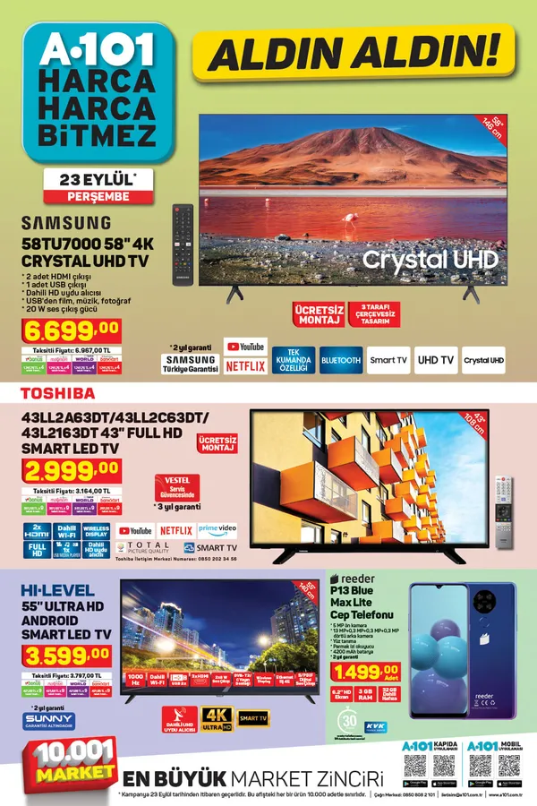 A101 aktüel ürünler kataloğu indirimli tam liste halinde yayınlandı. Her hafta binlerce müşterisini indirimleriyle buluşturan market Aldın Aldın sloganını duyurdu. İhtiyaçları doğrultusunda alışveriş yapacak olan vatandaşlar haftanın indirimli listesini merak ediyor. Peki 23 Eylül 2021 A101 aktüel ürünler kataloğunda bu hafta neler var? İşte A101 aktüel ürünler kataloğu!