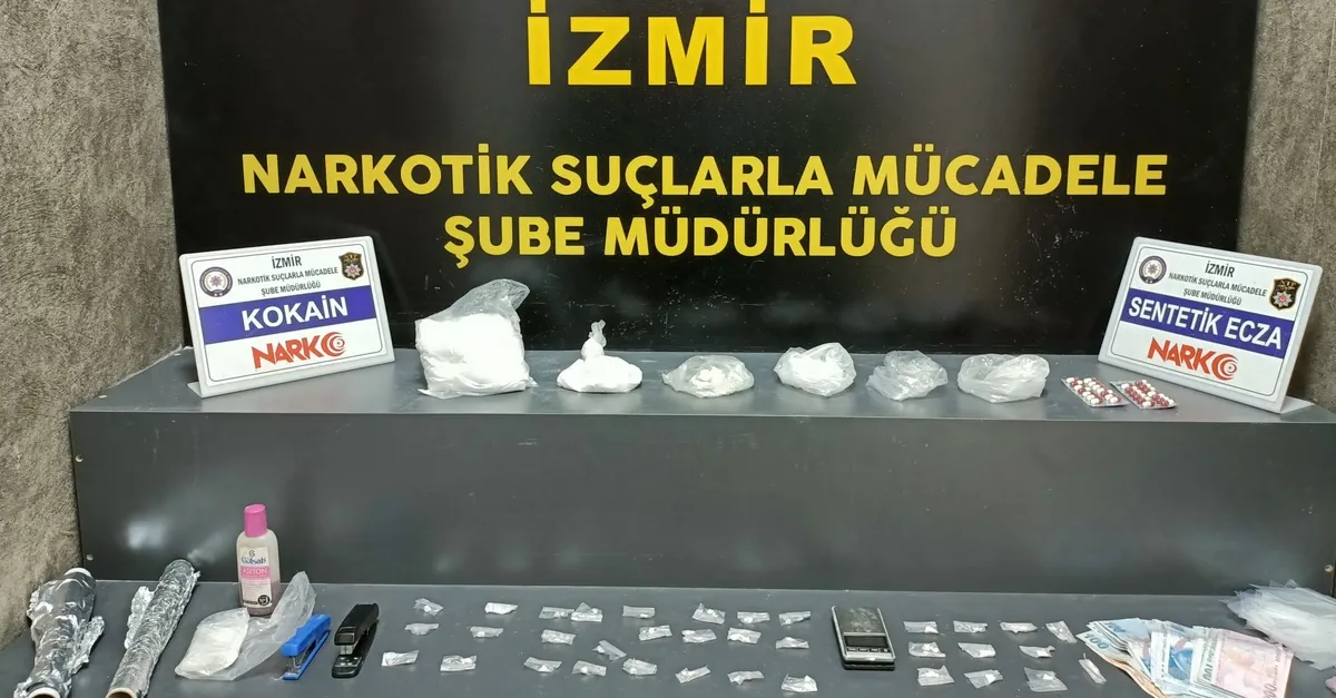 İzmir Emniyet Müdürlüğü Narkotik Suçlarla Mücadele Şubesi ekiplerinin uyuşturucuya karşı mücadelesi gece gündüz demeden aralıksız devam ediyor. İzmir'de yaz sezonu ile birlikte turistlerin gelmesiyle artan nüfusa bağlı olarak uyuşturucu trafiğinin engellemesi amacıyla kentin çeşitli noktalarında bir hafta içinde operasyonlar düzenlendi. Yapılan operasyonlarda, 51 kök kenevir bitkisi, 1 kilo 419 gram skank, 2 kilo 274 gram metamfetamin, 878 gram kokain, 22 gram sentetik kannabinoid (bonzai), 9 gram eroin, 23 bin 476 adet sentetik ecza, 265 adet ecstasy, 88 adet captagon, 6 adet hassas terazi, 1 adet ruhsatsız tüfek, 6 adet ruhsatsız tabanca, 96 adet tabanca/tüfek fişeği ele geçirildi.