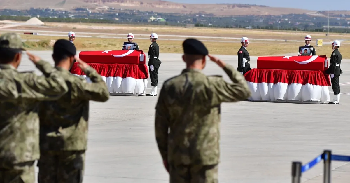 Şehitler için Gaziantep Havalimanı'nda uğurlama töreni düzenlendi.