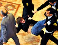 Anayasa Mahkemesi Başkanı Haşim Kılıç, Eskişehir Anadolu Üniversitesi'ndeki (AÜ) sempozyumda yumurtalı ve çakmaklı saldırıya uğradı. Atılan çakmak ve yumurta Kılıç'a isabet etmedi ancak üç öğrenci gözaltına alındı. "Anayasa Mahkemesi'ne bireysel başvuru hakkı" konulu dünkü sempozyuma, Anayasa Mahkemesi Başkanı Haşim Kılıç, Adalet Akademisi Başkan Yardımcısı Sami Sezai Ural, AÜ Rektörü Prof. Dr. Davut Aydın, Hukuk Fakültesi Dekanı Prof. Dr. Nüvit Gerek'in yanı sıra baro başkanları, hukukçular, öğretim görevlileri ile öğrenciler katıldı. Kılıç bireysel başvurunun yeni bir terim olduğunu belirterek, yargı reformunu anlatmaya başladı. Bu sırada bir kız öğrenci, Kılıç'ın sözünü keserek, "Yargı reformu ve bağımsızlığından bahsediyorsunuz. İleri demokrasi diyorsunuz. İTÜ'de 18 öğrenci hapis cezası aldı. Daha iki hafta önce bizim kolumuz bacağımız kırıldı" dedi. Kız öğrenci sözünü bitirmeden, iki erkek öğrenci ayağa kalkarak Kılıç'a doğru yumurta ve çakmak attı. D.A. isimli kız öğrenci ve Öğrenci Kolektifleri Grubu üyesi Y.Ç. ve C.A. güvenlik görevlilerince dışarı çıkarılarak gözaltına alındı. Konuşmasına devam eden Kılıç, "Değerli genç kardeşlerim ifade özgürlüklerini kullandılar. Biraz kabaca da olsa. Ancak saygıyla karşılıyoruz" dedi. Yaralama ve haraket suçlarından adliyeye çıkarılan üç öğrenci daha sonra serbest bırakıldı. "Yaralamaya teşebbüt ve hakaret" suçlarından adliyeye çıkarılan üç öğrenci serbest bırakıldı