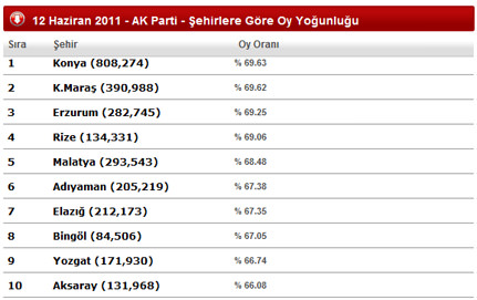 Başbakan Erdoğan'ın Karaman, Karabük ve Kırşehir'de vatandaşlara seslenmemesine karşın AK Parti, bu illerde oyların yüzde 50'sinden fazlasını alarak 6 milletvekilliğinin tamamını kazandı. Karabük'te oyların yüzde 57,9'unu kazanan AK Parti, TBMM Başkanı Mehmet Ali Şahin ile Osman Kahveci'yi Meclis'e gönderdi. Karaman'da oyların yüzde 57,4'ünü alan AK Parti'de Lütfi Elvan ve Mevlüt Akgün milletvekili olma sevinci yaşadı. Abdullah Çalışkan ve Muzaffer Aslan'ın Meclis'e gittiği Kırşehir'de ise AK Parti 50,5 oranında oy aldı. Başbakan Erdoğan'ın gitmediği bu illerde ise bakanlar aktif bir şekilde seçim çalışmalarını sürdürdü. Çalışma ve Sosyal Güvenlik Bakanı Ömer Dinçer, seçim bölgesi olmamasına karşın memleketi Karaman'a gelerek bir dizi açılışlarda bulundu. Karabük'te ise daha önce Antalya'dan vekil olan TBMM Başkanı Mehmet Ali Şahin faktörü dikkat çekti. Bu dönem baba ocağından aday gösterilen Şahin'in, AK Parti'nin iki vekil kazanmasında önemli rol oynadığı belirtildi. Başbakan Kırşehir'e gelmeyince seçim propagandalarına bakanlar Cemil Çiçek, Ali Babacan, Recep Akdağ katıldı. 3 bakanın Kırşehir'e gelip Abdullah Çalışkan ve Muzaffer Aslan'a destek olmasının, AK Parti'nin tulum çıkarmasına büyük katkı yaptığı kaydedildi.
