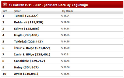 AK Parti; Genel Başkan, Başbakan Recep Tayyip Erdoğan'ın aday olduğu İstanbul 1. Bölge'de 30 milletvekilliğinin 16'sını, CHP; Genel Başkan Kemal Kılıçdaroğlu'nun aday olduğu İstanbul 2. Bölge'de 27 milletvekilliğinin 9'unu, MHP; Genel Başkan Devlet Bahçeli'nin aday olduğu Osmaniye'de 4 milletvekilliğinden 2'sini kazandı.