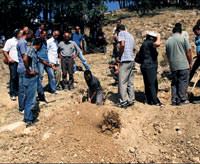 Tunceli'de, 14 yıl önce öldürülen teröristlerin toplu olarak gömüldüğü öne sürülen noktadaki kazı çalışmalarında, insan kemikleri bulundu. Kemikler, kimlik tespiti için Adli Tıp Kurumu'na gönderilecek. Çemişgezek'de 1997'de güvenlik güçleriyle girdikleri çatışmada öldürülen 17 PKK'lı ile 2 DHKP-C'linin toplu olarak gömüldüğü iddiasıyla başvurulan Malatya Özel Yetkili Cumhuriyet Savcılığı kazı kararı vermişti. Dün sabah saatlerinde, Savcı Şeref Gürkan gözetiminde Sağven Mahallesi'ndeki ilçe jandarma komutanlığı yanında başlatılan kazıda, Malatya Adli Tıp Kurumu'ndan gelen 2 antropolog, 2 adli tıp uzmanı ve olay yeri inceleme ekipleri de görev aldı. Kazılar, o dönem Mezarlıklar Müdürlüğü'nde çalışan görevlilerin gösterdiği 4 ayrı noktada başladı. Kazma ve kürekle bir sonuç alınmayınca iş makineleri devreye girdi. Kazıda çürümüş tabut içinde insan kemikleri bulundu. Bir başka noktadan da insana ait olduğu sanılan kemikler çıktı. Kemiklerin DNA testi ve kimlik tespiti için İstanbul Adli Tıp Kurumu'na gönderileceği belirtildi. Bu arada, kazı alanına, aileler ve avukatların yanı sıra CHP Tunceli Milletvekili Hüseyin Aygün'ün de gelmesi tansiyonu yükseltti. Gruptakiler CHP'li Aygün'e tepki gösterdi. Ancak Aygün, kazı çalışmalarını izlemeyi sürdürdü. Dün akşam saatlerinde ara verilen kazı çalışmaları bu sabahtan itibaren yeniden başlayacak.