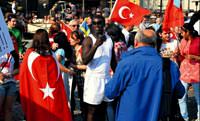 İsveç'in başkenti Stockholm'de dün, terör örgütü PKK'yı lanetleme yürüyüşü yapıldı. Medborgarplatsen'de toplanan İsveç'te yaşayan Türkler, son dönemde iyice tırmanın terörü lanetledi. İstiklal Marşı'nın okunmasının ardından şehitler için bir dakikalık saygı duruşu yapıldı. Gösteride açılan pankartlarla PKK'nın demokrasiyi sabote ettiği belirtilerek, medyanın PKK hakkında gerçekleri yazması talebi dile getirildi. Teröre karşı slogan atılan yürüyüş olaysız sona ererken, göstericiler arasına karışan bir turistin Türk bayrağı taşıması dikkat çekti.