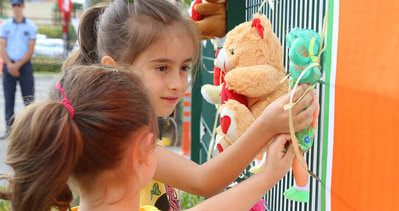 Bahçe çitlerine asılan sadece çocukların alması için bağlanan 500 oyuncakla da tören alanında ki çocuklar sevindirildi.