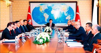 Başbakan Ahmet Davutoğlu başkanlığındaki Güvenlik Zirvesi, Başbakanlık Merkez Bina'da dün toplandı. Toplantıya Genelkurmay Başkanı Org. Necdet Özel, Başbakan Yardımcıları Bülent Arınç, Ali Babacan ve Yalçın Akdoğan, Dışişleri Bakanı Mevlüt Çavuşoğlu, İçişleri Bakanı Efkan Ala, Milli Savunma Bakanı İsmet Yılmaz, Genelkurmay 2. Başkanı Yaşar Güler, Başbakanlık Müsteşar Vekili Ergin Ergül, Dışişleri Bakanlığı Müsteşarı Feridun Sinirlioğlu, Başbakanlık Başmüşaviri Ali Sarıkaya, Emniyet Genel Müdürü Celalettin Lekesiz ve Başbakanlık Dışişleri Başdanışmanı Kemal Ökem katıldı. MİT Müsteşarı Hakan Fidan katılmazken, komutanların elindeki harita ve çantalar dikkat çekti.