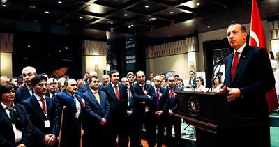 Cumhurbaşkanı Recep Tayyip Erdoğan, Yeni Türkiye'nin inşasında öğretmenlere büyük görev düştüğünün altını çizerek, "Geleceğin büyük Türkiye'si sizlerin ellerinde. Yeni Türkiye'de rol alacak gençlerimiz sizlerin ellerinde yetişecek" dedi. Cumhurbaşkanı Erdoğan, eşi Emine Erdoğan ile birlikte, 24 Kasım Öğretmenler Günü dolayısıyla Beştepe'deki yeni binada verdiği ilk resepsiyonda öğretmenleri konuk etti. Milli Eğitim Bakanı Nabi Avcı ile 81 ilden 204 başarılı öğretmenin katıldığı resepsiyonda, Erdoğan şu mesajları verdi:
