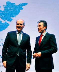 Gaziantep'teki Hasan Kalyoncu Üniversitesi'nde (HKÜ), eski NATO Genel Sekreteri Anders Fogh Rasmussen ve Başbakan Yardımcısı Numan Kurtulmuş'un da katıldığı "Ortadoğu'da Barış: Aktörler, Sorunlar ve Çözüm Arayışları Sempozyumu" düzenlendi. Sempozyumda konuşan Rasmussen, Suriye'deki sorunun çözümü için Bosna modelini önerdi. Rasmussen, Suriye'deki insani krizde Türkiye'nin üstlendiği rolü överken, "Bosna modeli uygulanabilir. Yumuşak bir bölünme ile güç ve iktidar yerel halklar, mezhepler arasında paylaştırılabilir. Türkiye, bölgede hakikaten bir istikrar, ilericilik, umut ve refah feneri gibi parlıyor. Finansal istikrara kavuşmuş, açık bir piyasa ve küresel bir ekonomi izleyen bir ülke. Giderek büyüyen ve artan refah, insanlarına da mutluluk getiriyor. Ama bölgedeki kaos burayı tehdit ediyor" dedi. Başbakan Yardımcısı Numan Kurtulmuş ise Ortadoğu'da barışın sağlanmasının dünya barışı anlamına geldiğini söyleyerek, Rasmussen'in önerdiği Bosna modelini doğru bulmadığını belirtti. Kurtulmuş, "Suriye'deki sorunun çözümü parçalayıp bölmekten değil, tersine birleştirmekten geçiyor. Bunun için de Esad'ın gitmesi gerekiyor" diye konuştu. HKÜ Mütevelli Heyeti Başkanı Cemal Kalyoncu da amaçlarının sadece akademik bir çalışma olmadığını belirterek, "Nizip konteynır kentinde de incelemeler yapılarak devletimizin bu konudaki katkıları da göz önüne serilecek. Bu etkinlik öğrencilerimiz için de önemli bir tecrübe olacaktır" ifadesini kullandı.