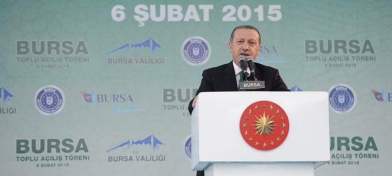 Bununla yetinmiyoruz her kesimden insanımızla milletin sarayında Ankara'da milletin evinde toplantılarla bir araya geliyoruz. Hasbihal ediyoruz. Onunla da kalmıyor her fırsatta şehirlerimizi ziyaret ediyoruz vatandaşlarımızla buluşup hasret gideriyoruz. Bursa, Cumhurbaşkanı olarak 7. teşekkür ziyaretinde bulunduğum açılışlar yaptığım şehir. Türkiye Cumhuriyeti Cumhurbaşkanı'nın bu tutumundan rahatsız olanlar var. Geçenlerde bir milletvekili YSK'ya müracaat etmiş, Cumhurbaşkanı seçimlere kadar meydanlara çıkmasın YSK da bunu reddetmiş. Diyor ki Cumhurbaşkanı siyaset yapıyor. Ben sadece istikbale yönelik kararlarımı söylüyorum. 7 Haziran'da seçim var. 7 Haziran seçimlerinde biz yeni Türkiye istiyorsak, yeni Anayasa diyorsak 400 milletvekili vermemiz lazım, Başkanlık sistemi istiyorsak 400 milletvekili vermemiz lazım ki bu gerçekleşsin. Çözüm sürecinisi istiyorsak gümbür gümbür iktidarda olan parti bunu gerçekleştirsin. Türkiye artık çok daha güçlü bir şekilde geleceğe yürümektedir.