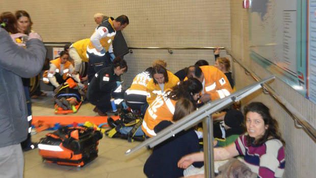 İzmir Metrosu Üçyol İstasyonu'ndaki yürüyen merdivende, ilk belirlemelere göre taşıyıcı halatın kopmasıyla üzerindekilerin dengesini kaybederek düşmesi sonucu 14 kişi yaralandı.
