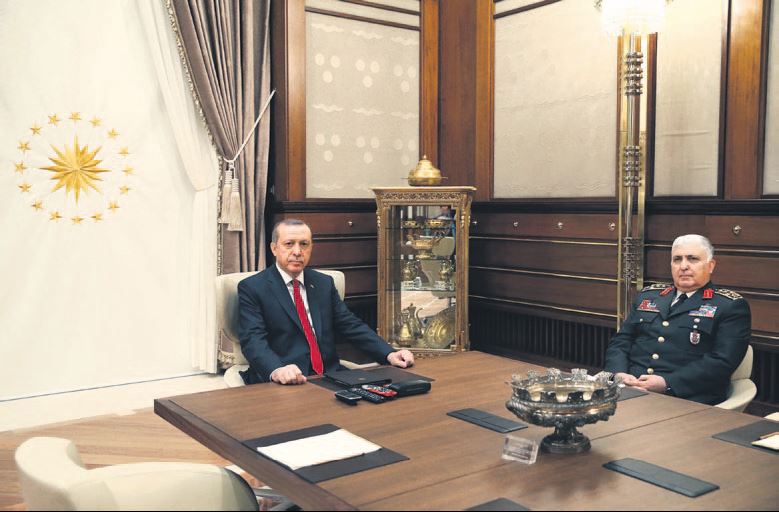 Cumhurbaşkanı Tayyip Erdoğan, devlet günü nedeniyle Cumhurbaşkanlığı Sarayı'nda Genelkurmay Başkanı Org. Necdet Özel ile bir araya geldi.
