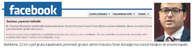 HSYK seçimlerinde yargı içerisindeki cemaat oluşumuna karşı Yargıda Birlik Platformu'nu destekleyen, "Avukat-Hakim-Savcı Tüm Hukukçular Omuz Omuza!" adlı Facebook grubu hakkında erişiminin engellenmesi kararı verildi. İstanbul Anadolu 2.Sulh Ceza Hakimliği, Avukat Sedef Ünal'ın başvurusu üzerine erişimin engellenmesi kararı verdi. Mahkeme kararını, Ünal'ın "kişilik haklarının ihlal" edildiği gerekçesine dayandırdı.