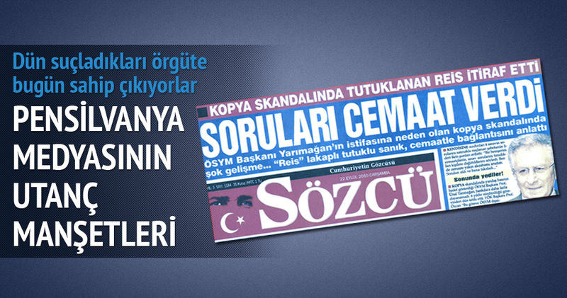 Pensilvanya medyası ve CHP yine kıvırdı. 2010 yılındaki KPSS sınavındaki kopya skandalında bütün deliller Paralel Suç Örgütü'nü gösterirken dönemin Özel Yetkili Savcıları tarafından soruşturma örtbas edilmişti. O günlerde KPSS soruların çalınması ve Paralel Suç Örgütü üyelerine dağıtılmasını sert bir dille eleştiren Cumhuriyet ve Sözcü gazeteleri bugün KPSS skandalında Gülen'in yanında yer alıyor.2010 yılında Meclise soru önergesi verererek Gülen hareketini sorumlu tutan CHP ise bugün KPSS operasyonunda Gülen örgütünü savunuyor.