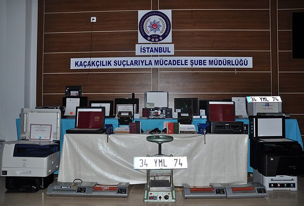 Adreslerde yapılan aramalarda, sahte oldukları belirlenen 332 nüfus cüzdanı, 562 sürücü belgesi, 265 Türkiye Cumhuriyeti pasaport yaprağı, 2 otomobil plakası, farklı ülkelere ait 37 pasaport ile çok sayıda sahte diploma, profesörlük belgesi, soğuk mühür, kaşe, pasaport hologramı, vize ve kimlik fotokopisi, 3 renkli yazıcı, 6 bilgisayar, 30 cep telefonu, 1 ruhsatsız tabanca, 1 şarjör ve 69 mermi ele geçirildi.