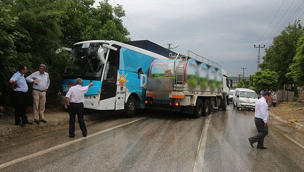 Durumu telefonla Jandarmaya bildiren Milletvekili adayı Şemsettin Emir, "Köy içerisinde normal hızla gidiyoruz. Kamyon viraja hızlı girdi. Allah korudu. Bizim şöför çok tecrübeli. Hemen otobüse yan tarafa kırarak kaldırıma çıktı. Bizim hayatımızı kurtardı. Yoksa bizim hepimizi biçip gitmişti." dedi.