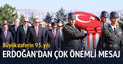 Büyük Zafer'in 93. yıl dönümüne ulaştığımız bugün, bizlere emanetin olan cumhuriyetimizi ilelebet payidar kılmak için var gücümüzle çalışmaya devam ediyoruz. Kurtuluş Savaşımızın dönüm noktası olan Büyük Zafer'de ve o güne kadar geçen süreçte inancı ve iradesiyle tarihi bir mücadele veren Zat-ı Ali'niz başta olmak üzere Büyük Millet Meclisi mensupları ile erinden subayına kadar tüm askerlerimizi rahmetle ve minnetle yad ediyorum.