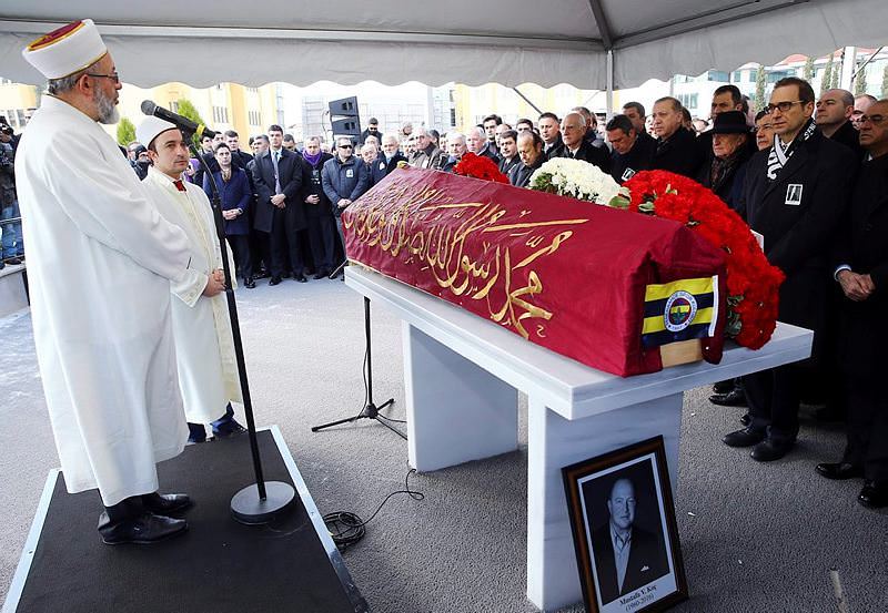 Merhum Mustafa Koç'un tabutu üzerine aile bireylerini temsilen çiçekler bırakıldı. Tabutun üzerinde bir de Fenerbahçe flaması yer aldı.