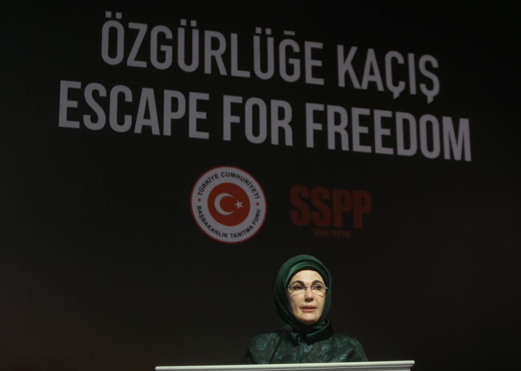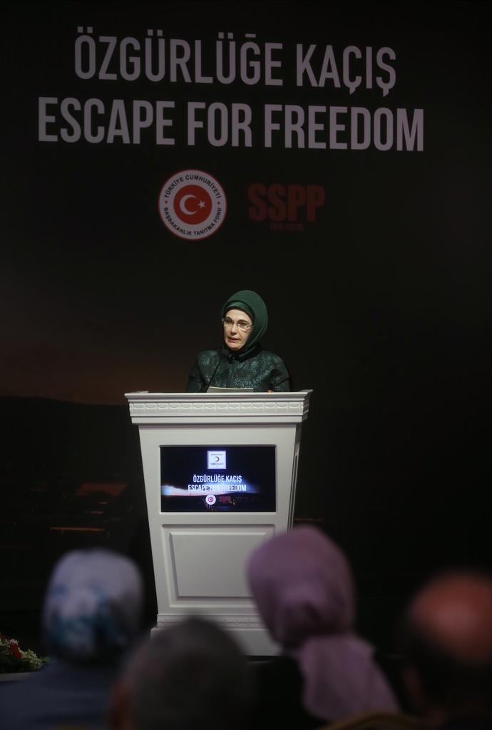 Cumhurbaşkanı Recep Tayyip Erdoğan'ın eşi Emine Erdoğan özgürlüğe kaçış belgeseli’nin galasına katıldı.