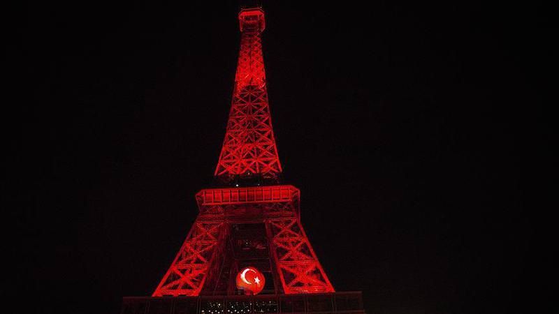 İstanbul’daki terör saldırısında hayatını kaybedenlerin anısına Paris’in simgesi, Eyfel Kulesi Türk Bayrağı’nın renkleri ile aydınlatıldı.