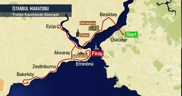 Çevre yollarından güney Zincirlikuyu ayrımı (Beşiktaş-Levent ayrımı), Fenerbahçe Göztepe'den Gelip TEM ayrımına katılım (Göztepe'den gelip TEM E-5 kuzey ayrımı), Botanik Bahçesi'nden Rıdvan Dedeoğlu istikametine katılım (Kuzey Çamlıca turnikelerden geliş Kozyatağı ayrımı), FSM turnikelerden gelip 1. Çevre Yolu ayrımı güneyden gelip kuzeye katılım, Mustafa Kemal Köprü altından kuzeye katılım, Altunizade köprü altı koşunun başladığı yer, maraton ile koşu arası, Park girişi maratonun başladığı yer park çıkışı, park çıkışı turnikeler arası ve kuzey turnike sahası trafiğe kapalı olacak.