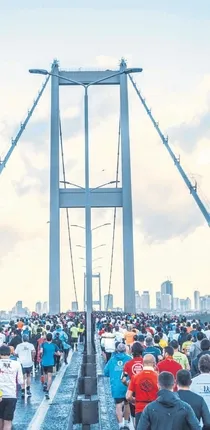 Vodafone 38. İstanbul Maratonu'na katılan 10 binlerce İstanbullu, Altunizade'den başlayan "Kahramanlar Koşusu" ile Asya'dan Avrupa'ya geçerek Dolmabahçe'ye ulaştı. Maraton kapsamında 100'e yakın şehit yakını ve gazi de 93 metrelik Türk bayrağıyla köprüyü geçti.