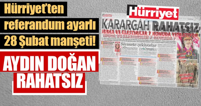 Hürriyet, eski Türkiye alışkanlığını manşete taşıyarak, halk oylamasına gittiğimiz süreçte, acaba ordu içinde yeni bir darbe hazırlama algısı oluşturmayı mı amaçlıyor. Demokrasi ile bağdaşmayan bir tutum bu. 15 Temmuz'da darbeye karşı şerefle direnen ordunun üstünden bu Bu milletin ordusu değerleri ile asla ters düşemez ve eski Türkiye alışkanlıklarından uzak durur.
