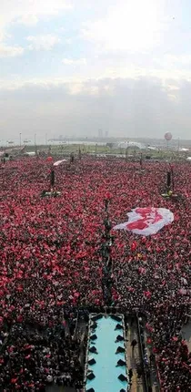 'Aşkımız memleket, millet için evet' sloganıyla gerçekleştirilen büyük buluşma için İstanbul'un farklı ilçelerinden vatandaşlar metro, Marmaray, vapur ve otobüslerle Yenikapı Meydanı'na akın etti. CHP konya milletvekili Hüsnü Bozkurt'un 'evet çıksa bile sizi denize dökeriz' şeklindeki küstah sözlerine cevap alana motorla denizden gelen Silivrililer'den geldi.