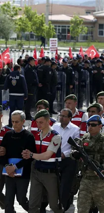 Yürütülen darbecilerin başında kalkışmanın en önemli isimlerinden eski Hava Kuvvetleri Komutanı Akın Öztürk yer alıyordu. Vatandaşlar en büyük tepkiyi Akın Öztürk'e gösterdi. Sanıklar yürüdükleri yolun sonunda tek tek duruşma salonunun bulunduğu binaya alındı. Cuntacı Akın Öztürk başta olmak üzere çoğu sanık, adreslerinin mahkeme kayıtlarına girmesini engellemek için "hatırlamıyorum" dedi ve adres olarak "Sincan Cezaevi" yazdırdı. Duruşma sürerken de gerginlik devam etti. Müşteki yakınlarından bazıları, sanıklara yönelik sinkaflı sözler sarf etti. Şehit yakınları, avukatlara "Teröristleri savunanlar teröristtir" ve "Hepiniz teröristsiniz" diye bağırdı. Ankara 17'nci Ağır Ceza Mahkemesi'nin baktığı davada Mahkeme Başkanı Oğuz Dik duruşmaya bir süre ara vermek zorunda kaldı.