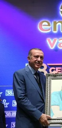 Ensar Vakfı Başkanı Cenk Dilberoğlu, Erdoğan'a, 15 Temmuz gecesi Marmaris'te torununa Kuran dersi verirken çekilen fotoğrafın, yağlı boya tablosunu hediye etti