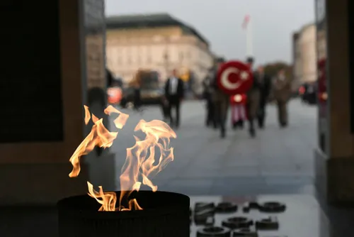 Cumhurbaşkanı Erdoğan, resmi temaslarının ardından Meçhul Asker Anıtı'na geçti. İstiklal Marşı'nın çalınmasının ardından anıta çelenk bırakan Erdoğan, daha sonra anıt defterini imzaladı.
