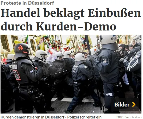 Düsseldorf'un alışveriş merkezi Königsalle İşyerleri Birliği (İG-Kö) Başkanı Peter Wienen, "Königsalle'nin devamlı bu tür gösterilerden zarar görmesi, bizim için hayal kırıklığı yaratan bir durum" dedi. Gösteri yüzünden saatlerce trafiğin tıkandığını, insanların şehir merkezine gelemediğini belirten Wienen, gösteride tehdit edici bir hava yaşandığını ve bunun insanları korkuttuğunu kaydetti.