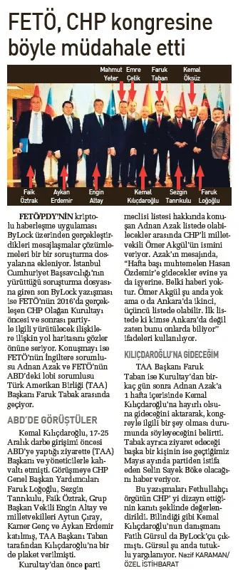 FETÖ öte yandan CHP'nin 2016'daki kongresine böyle müdahale etmişti! CHP kongresi öncesinde ABD'yi ziyaret eden CHP heyetinin başında CHP Bursa Milletvekili Aykan Erdemir de vardı. FETÖ'cü imamlarla birçok fotoğrafı olan Erdemir'in örgüt ile bağlantısı araştırılıyor.