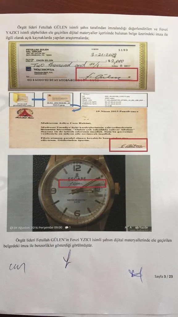 Talimatın belgesi, kapatılan Zaman Gazetesi'nin yöneticilerinden Fevzi Yazıcı isimli şüphelinin flash bellek içerisinde ABD'den getirdiği belirlendi.