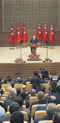 Cumhurbaşkanı Erdoğan, dün Cumhurbaşkanlığı Külliyesi'nde 42. Muhtarlar toplantısında Adana, Antalya, Balıkesir, Bilecik, Bingöl, Çankırı, Çorum, Erzincan, Isparta, İstanbul, Kırklareli, Konya, Muş, Samsun ve Tekirdağ illerinden gelen muhtarlara hitap etti. Erdoğan, özetle şöyle dedi:
