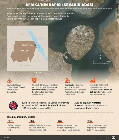 Reuters'ın haberine göre Sudan Dışişleri Bakanı İbrahim Ghandour, Türkiye'nin Sevakin Adası'nda askeri ve sivil gemilerin bakımının yapılabileceği bir liman inşa edeceğini duyurdu.