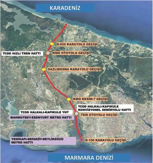 Bakan Arslan, Marmara tarafındaki 3 geçişi, Marmaray projesinde olduğu gibi, batırma tüp ile Küçükçekmece Gölü'nün altından geçirmeyi hedeflediklerini söyleyerek, kuzey yönündeki diğer alternatiflerin tamamını köprü geçişi şeklinde yapacaklarını bildirdi. Küçükçekmece Gölü'nün tatlı su kaynağı olarak kullanılmadığını söyleyen Arslan, "Küçükçekmece Gölü'nden girerek Karadeniz'e kadar çıkacak. Bir anlamda gölü, Karadenizle Marmara'ya bağlamış olacağız" dedi.