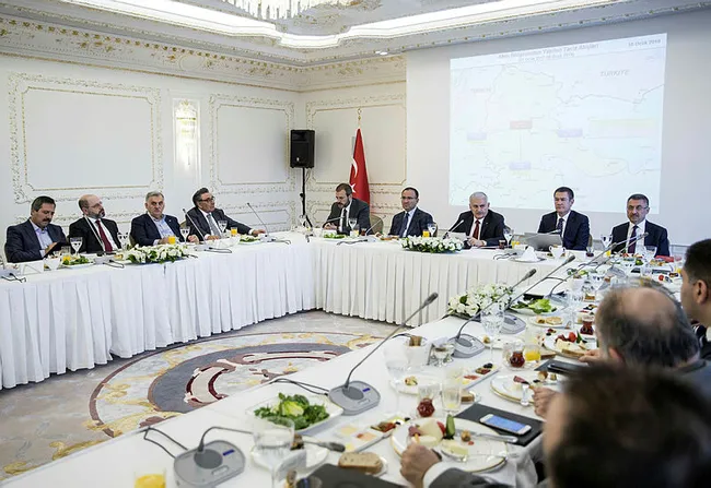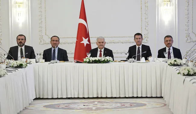 Toplantıya Başbakan Yardımcısı Bekir Bozdağ, Milli Savunma Bakanı Nurettin Canikli, AK Parti Genel Başkan Yardımcısı ve Parti Sözcüsü Mahir Ünal, Başbakanlık Müsteşarı Fuat Oktay da katıldı.