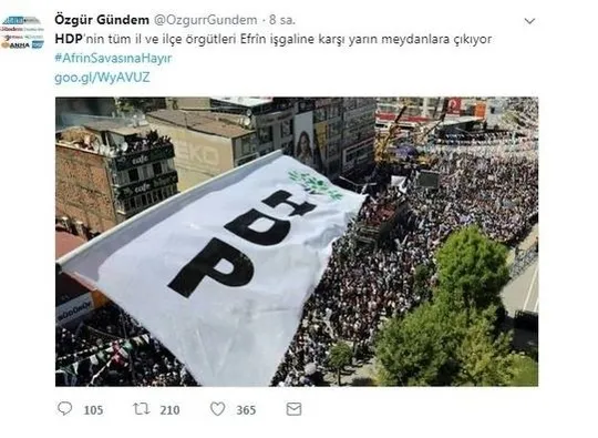 Sabaha kadar HDP'ye yakın isimler ve HDP'li vekiller Afrin operasyonunu "oradaki Kürt halkına katliam yapılıyor" yalanıyla gölgelemeye çalıştı. Sosyal medyadan bekledikleri karşılığı göremeyen HDP'liler çözümü halkı sokağa dökmekte buldu.