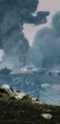 İşte kirli kampanya için kullanılan görsel. Gerçekte Türk svaş uçaklarının saldırısıyla ilgisi yok. İnternette bulunmuş herhangi bir fotoğraf. Aşağıda gözüktüğü gibi fotoğrafın orjinali 2016 yılında Kuveyt'te yaşanan bir yangına ait..