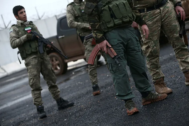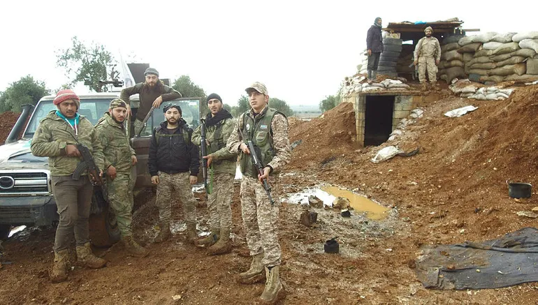 (Türkiye tarafından eğitilen 7 bin ÖSO savaşçısı, teröristlerin araya sızmasını önlemek için kollarına sarı bant taktı)