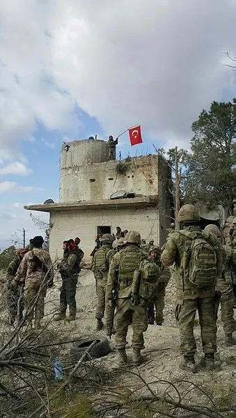 Türk Silahlı Kuvvetleri (TSK) ve Mehmetçiğin desteklediği Özgür Suriye Ordusu (ÖSO) terör örgütü PYD/PKK'nın işgalindeki Afrin'e 4 koldan ilerlemeye başladı. Batıda Hatay, doğuda Azez, kuzeyde Kilis ve güneyde İdlib'de bulunan Türk üsleri üzerinden tanklar desteğiyle Suriye topraklarına giren Mehmetçik ve ÖSO mensupları, şehirdeki teröristlerin Afrin'in kuzeyinde bulunan dağlara yaslanıp kendisine avantaj sağlamasına izin vermedi.