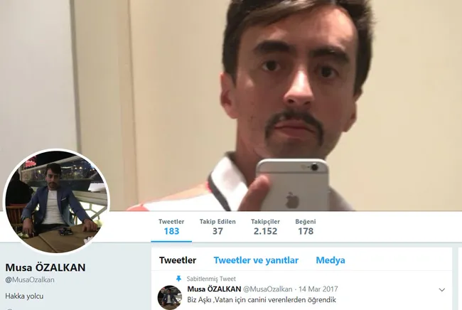 Türkiye'nin Afrin'e yönelik sürdürdüğü Zeytin Dalı Harekâtı'nın ilk şehidi Musa Özalkan'ın sosyal medya hesabı Twitter profilinde 'Hakka Yolcu' yazısı dikkat çekti. Şehidin ayrıca 14 Mart 2017 günü attığı ve sabitlediği tweetinde "Biz Aşkı ,Vatan için canini verenlerden öğrendik" yazması duygulandırdı.